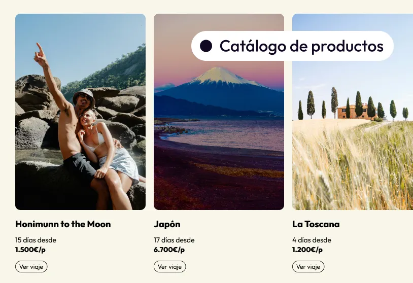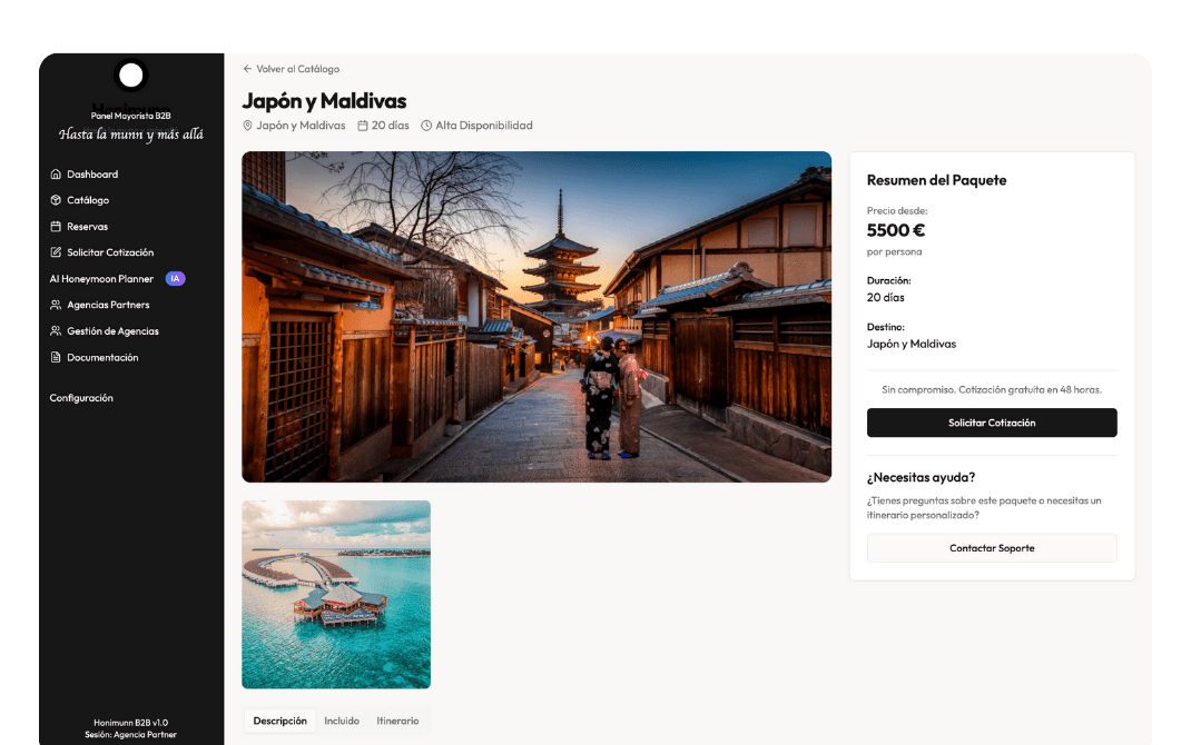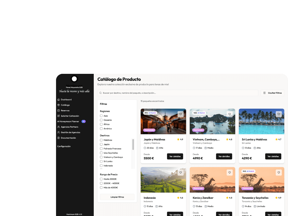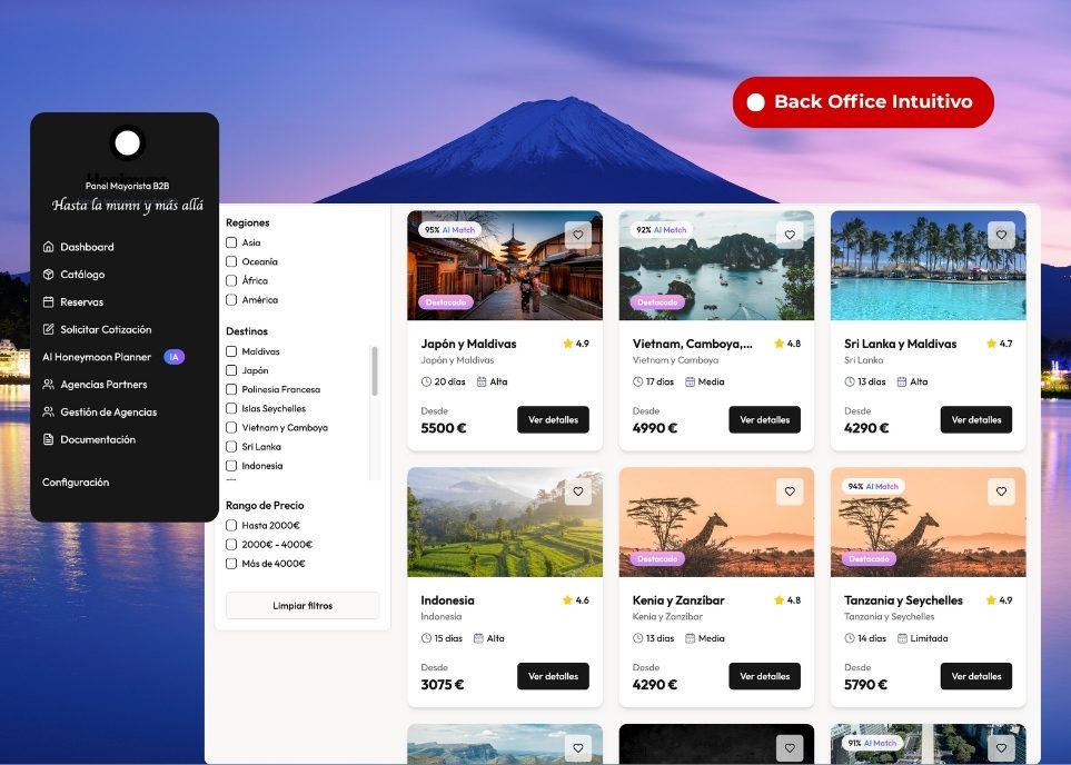 Producto diseñado específicamente para lunas de miel y grandes viajes y un backoffice intuitivo.